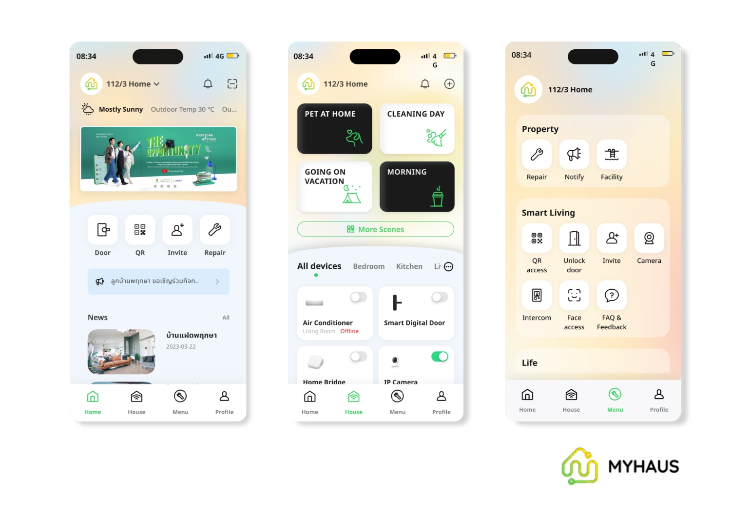 MyHaus application has been developed to provide residential services and the best residential experiences tailored for Pruksa residents. By incorporating IoT technology, the application enhances the value of the Company’s real estate business, enabling seamless connectivity between home devices and the platform. This allows users to conveniently manage and control devices within their homes. Following its initial success, MyHaus took a significant step forward in 2024 by launching an online property management platform. This new feature enables users to easily interact with juristic offices, further enhancing convenience and efficiency in property management. In addition, SGC emphasizes its commitment to Sustainable Development Goals (SDGs), particularly in the areas of sustainable and renewable energy. To advance this mission, SGC established a new entity to operate a solar energy business under the MyHaus brand. This initiative focuses on generating clean, renewable energy as an alternative for businesses within the Group. Solar panels are installed to harness sunlight and convert it into electricity, offering a cost-effective energy solution for residents and contributing to the reduction of greenhouse gas emissions.