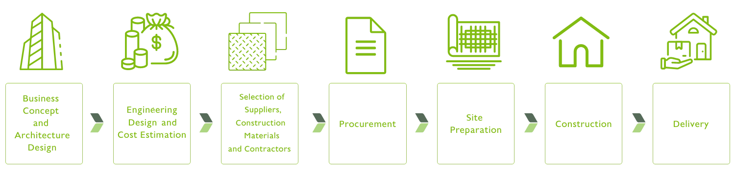 The company conducts thorough studies and analyzes customer needs to develop tailored concepts for construction projects. This process includes defining key project details such as architectural design, project layout, and other essential elements related to project development.