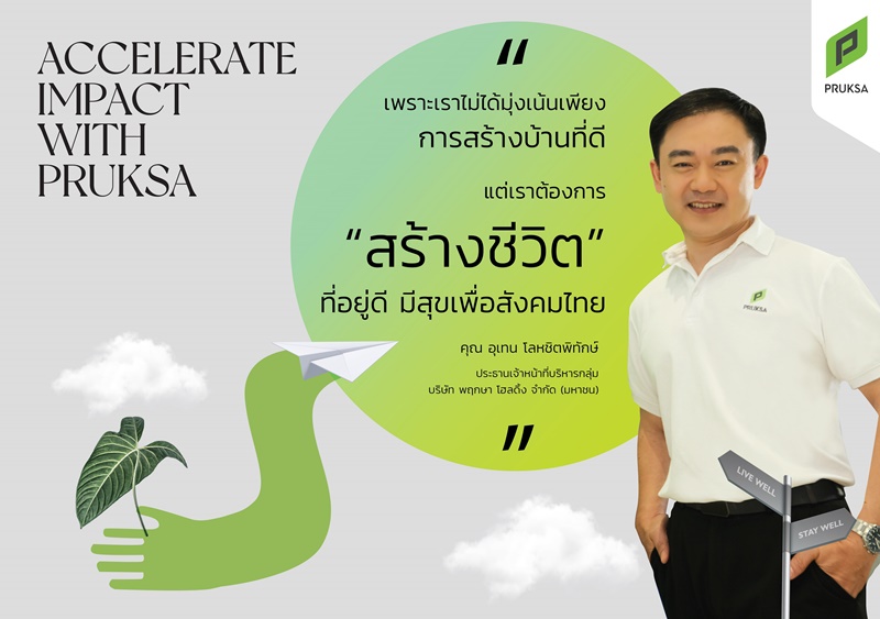 “เพราะเราไม่ได้มุ่งเน้นเพียงการสร้างบ้าน แต่เรายังต้องการ “สร้างชีวิต” ที่อยู่ดี มีสุขเพื่อสังคมไทย โครงการ “Accelerate Impact with PRUKSA” จึงเป็นความตั้งใจที่พฤกษา มุ่งมั่น ใส่ใจ ทุ่มเท เพื่อสร้างโอกาส สร้างคุณค่า สร้างชีวิตที่ดีขึ้นให้กับสังคม และชุมชนให้เติบโตร่วมกันอย่างยั่งยืนอย่างเป็นรูปธรรม เพื่อยกระดับมาตรฐานคุณภาพความสุขที่แท้จริงของการใช้ชีวิตของคนไทยทุกคน” นายอุเทน กล่าว
