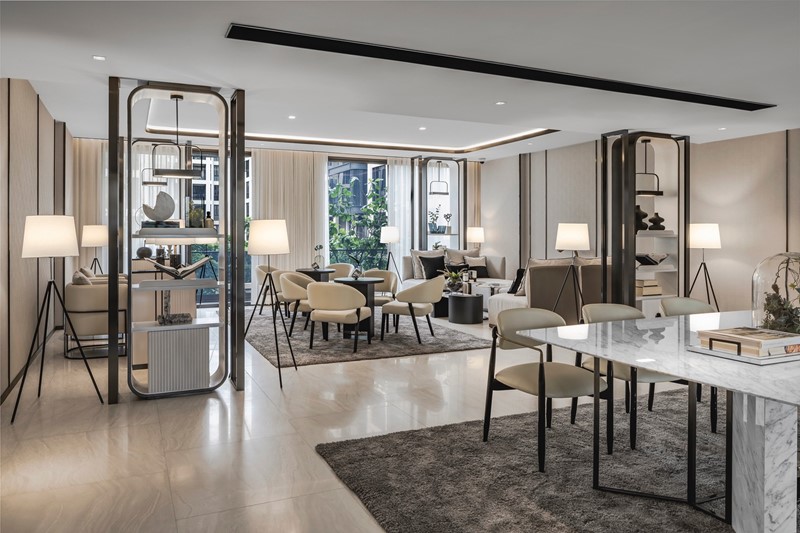 ห้องพักอาศัยเริ่มที่แบบ 1 ห้องนอน ขนาด 49 ตร.ม. ไปจนถึงแบบ 3 ห้องนอน Triplex ขนาด 228 ตร.ม. พร้อมชุดครัว เครื่องใช้ไฟฟ้าในชุดครัว และสุขภัณฑ์จากแบรนด์ระดับเวิลด์คลาส อาทิ Gorenje, Villeroy & Boch พร้อม VDO Door Phone และ Home Automation ในทุกยูนิต ราคาเริ่มต้น 12.9 ล้านบาท ที่มาพร้อมเฟอร์นิเจอร์จากแบรนด์ Olivia Living