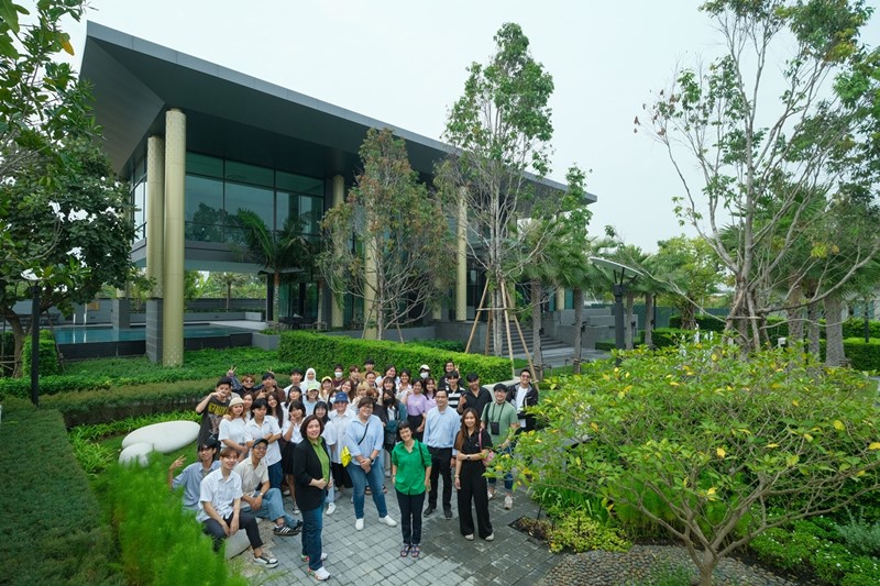 โดยนิสิตได้เยี่ยมชม และเรียนรู้การออกแบบโครงการบ้านเดี่ยวระดับพรีเมียม ได้แก่ โครงการเดอะปาล์ม บางนา-วงแหวน และ โครงการทาวน์เฮาส์ เดอะ คอนเนค บางนา-วงแหวน รวมถึงการออกแบบจัดสวนบำบัดเสริมสร้างสุขภาวะกายและใจ เพื่อสร้างสมดุลชีวิตที่ดี ผ่านการกระตุ้นประสาทสัมผัสทั้ง 7 (7 Senses Therapeutic Garden) ที่ประกอบด้วย 1) การมองเห็น 2) การได้ยิน 3) การรับกลิ่น 4) การรับรส 5) การสัมผัส 6) การรับรู้การเคลื่อนไหวการทรงตัว และ 7) การรู้ระยะตำแหน่งท่าทางในพื้นที่ ในโครงการ "เดอะปาล์ม" พร้อมทั้งเรียนรู้การออกแบบศูนย์ดูแลและฟื้นฟูสุขภาพสำหรับครอบครัวและผู้สูงอายุ "วิมุต เวลเนส" ด้วย