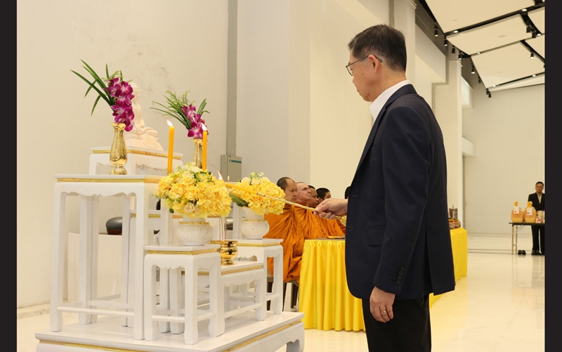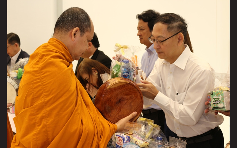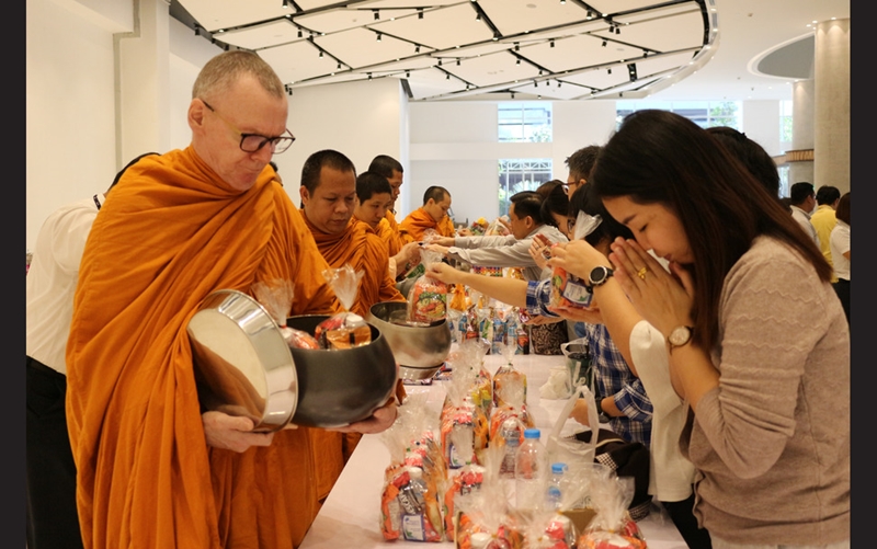 นายประสาร ไตรรัตน์วรกุล กรรมการอิสระ กรรมการตรวจสอบ ประธานกรรมการบริหารความเสี่ยงระดับองค์การ ร่วมทำบุญตักบาตรอาหารแห้ง ถวายพระสงฆ์ 9 รูป จากวัดบวรนิเวศราชวรวิหาร เนื่องในวันมาฆบูชา ณ บริเวณชั้น 1 อาคารเพิร์ล แบงก์ค็อก