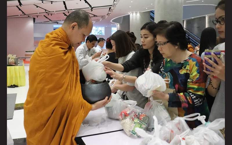 พฤกษา ร่วมกับ ทีซีที จัดทำบุญตักบาตรอาหารแห้ง พระภิกษุ 9 รูป จากวัดบวรนิเวศราชวรวิหาร เนื่องในวันขึ้นปีใหม่