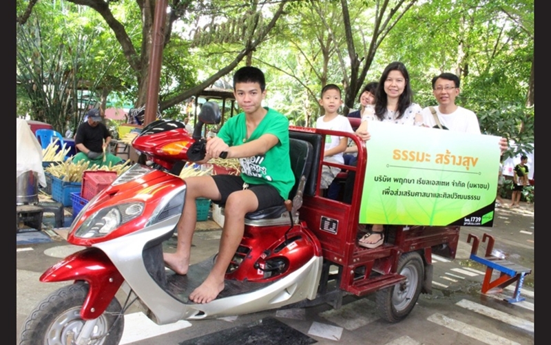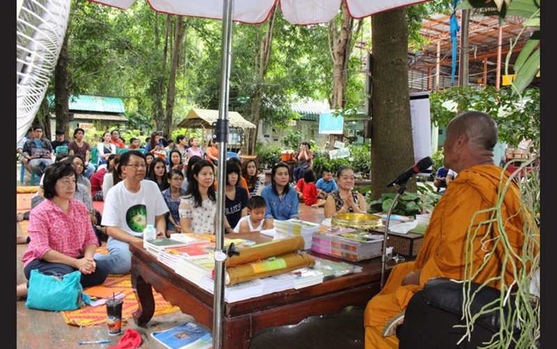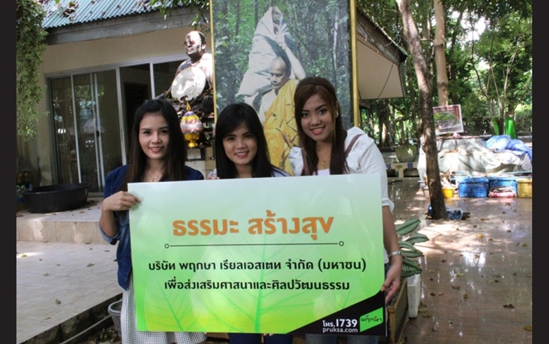 Executives and employees of Pruksa Real Estate Public Company Limited, as well as their families, participated in the activity “Happiness…by Dhamma” No. 2 for the year 2014, in which Phra Payom Kallayano gave a sermon in the topic “Work Happily, Create No Misery to Colleagues” in a fun and knowledgeable way. The participants also donated “fertilizers” to be used to grow plants in Suankaew Temple, Nontaburi Province.
