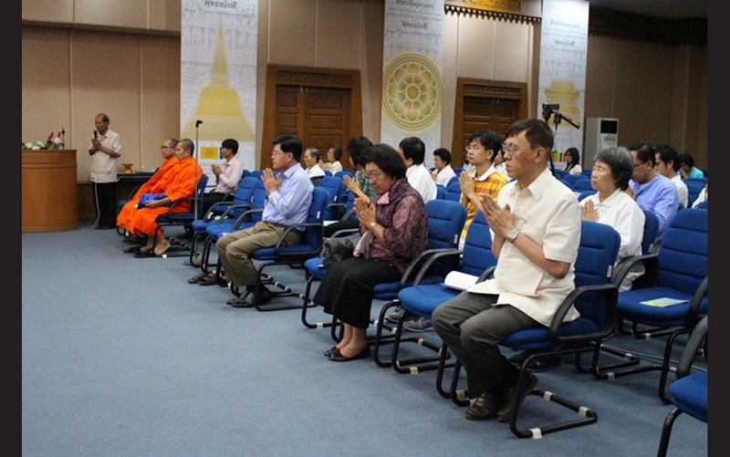 Mr. Thongma Vijitpongpun, Chairman and Chief Executive Officer, Pruksa Real Estate PCL, led a team of staff members and their families to join the Dharma talk titled “Consciousness is a merciful Dharma” presented by Venerable Archan Praraj Pathiphan Sopon, the Patron Chairman of Buddha Bhiwadhana Foundation and Vice Abbot of Wat Rajorasaram at The World Fellowship of Buddhists, Benjasiri Park. In addition to listening to the sermons, the participants also made the merit together by offering robes to the monks. Sponsored by Vijitpongpun Scholarships.