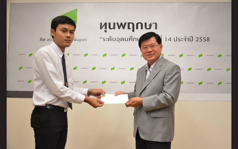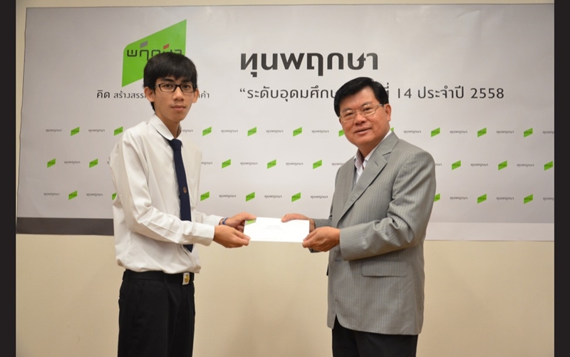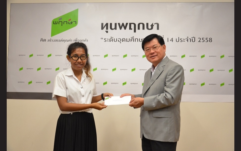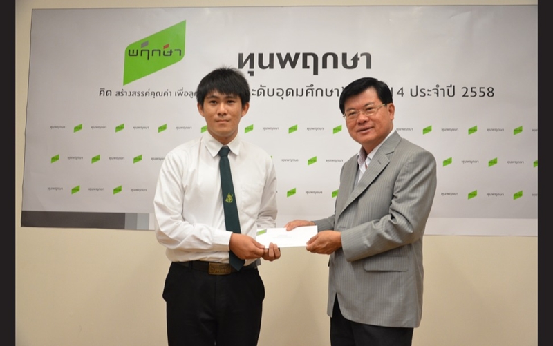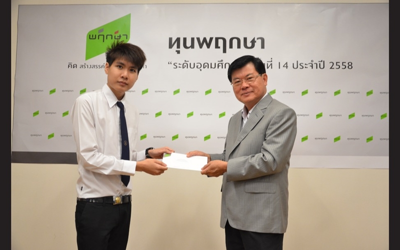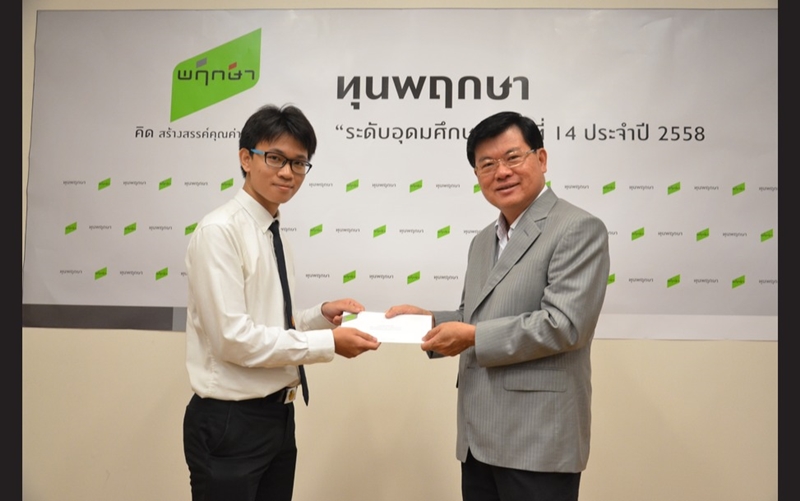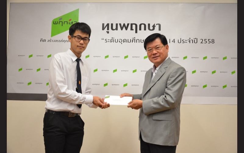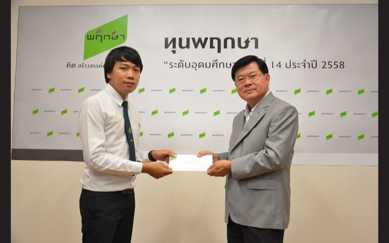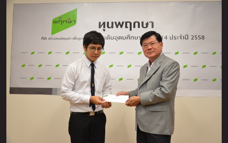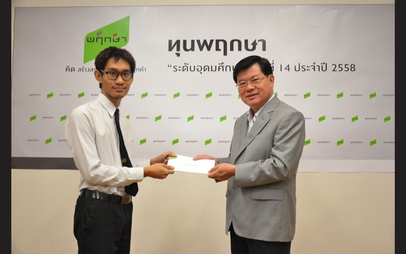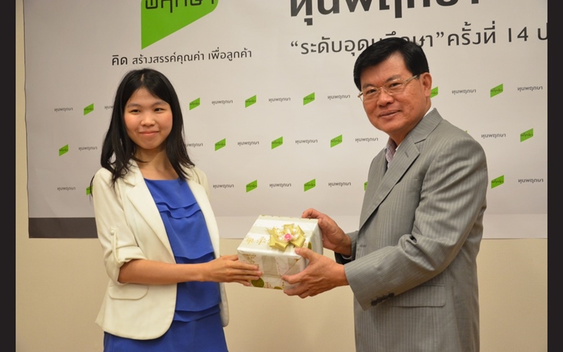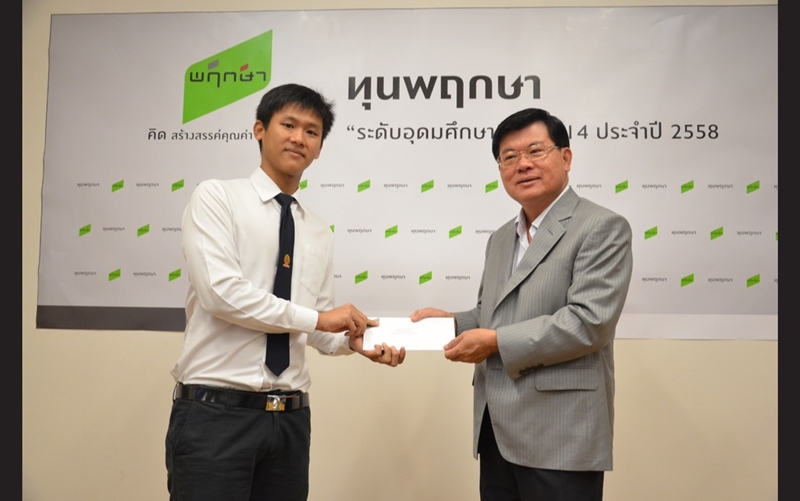 Mr. Thongma Vijitpongpun, Chief Executive Officer, presented the 14th “Pruksa Scholarship” 2015 to students in the Department of Civil Engineering, Faculty of Engineering from 7 academic institutions including Chulalongkorn University, Kasetsart University, Chiang Mai University, Thammasat University, Mahidol University, King Mongkut’s University of Technology Thonburi, and King Mongkut's Institute of Technology Ladkrabang. A total of 29 scholarships were granted, amounting to 1,150,000 Baht.