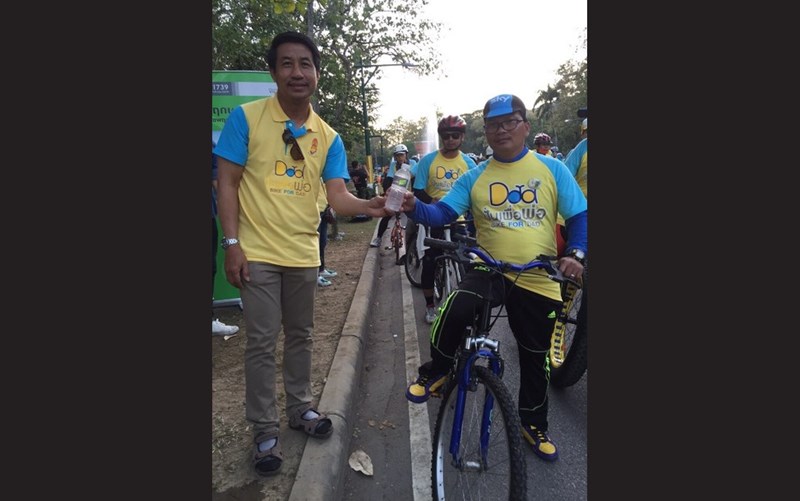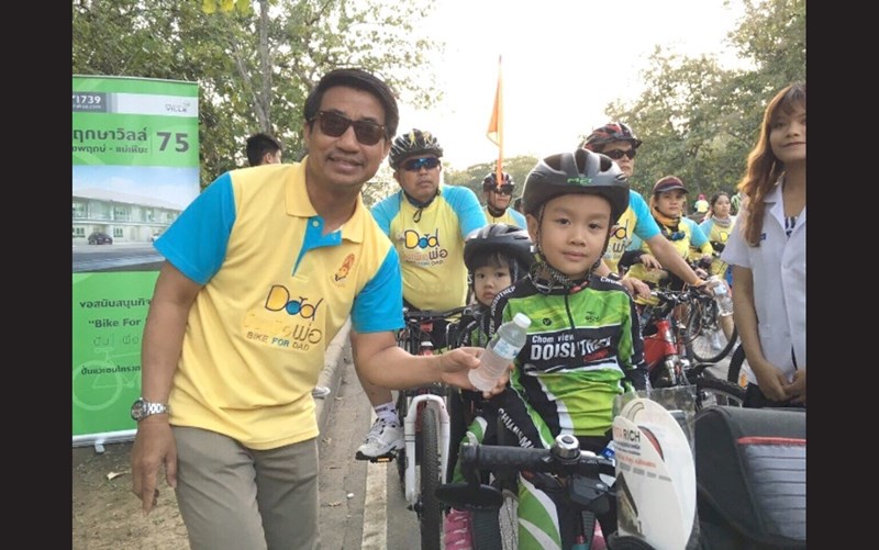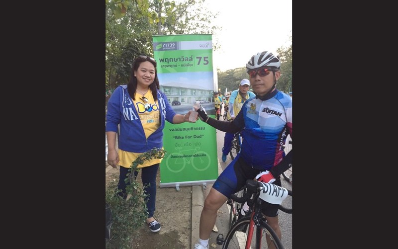 The management and employees of Pruksa Real Estate Company Limited set up stations to provide drinking water for citizens who waited for the appearance of the Royal Family and citizens who participated in the bicycling activity at “Bike For Dad” event, in honor of the Auspicious Occasion of His Majesty the King Bhumibol Adulyadej’s 88h Birthday Anniversary on 5 December 2015. The drinking stations were located in front of Phayathai Police Station.