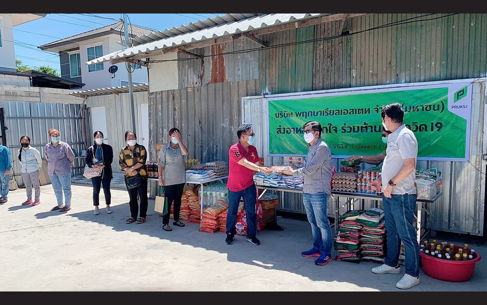 พฤกษารุดลงพื้นที่ ส่งมอบความช่วยเหลือแก่แรงงานและพันธมิตรบริษัทผู้รับเหมาก่อสร้าง ที่ได้ดำเนินการปิดแคมป์คนงานเป็นระยะเวลา 30 วัน เพื่อลดการแพร่ระบาดไวรัสโควิด-19 ตามนโยบายภาครัฐ นำทีมโดย นายปิยะ ประยงค์ ประธานเจ้าหน้าที่บริหาร พร้อมคณะผู้บริหารและทีมงาน บริษัท พฤกษา เรียลเอสเตท จำกัด (มหาชน) ลงพื้นที่ให้กำลังใจและส่งมอบข้าวสาร อาหารแห้ง น้ำดื่ม ยารักษาโรค รวมถึงสิ่งของเครื่องใช้อื่นๆ ที่จำเป็นต่อการดำรงชีวิต เพื่อบรรเทาความเดือดร้อนแก่แรงงานภายใต้ความดูแลของพาร์ทเนอร์บริษัทผู้รับเหมาที่ได้รับผลกระทบกว่า 4,000 ราย