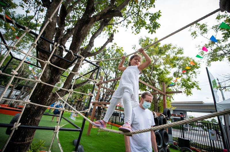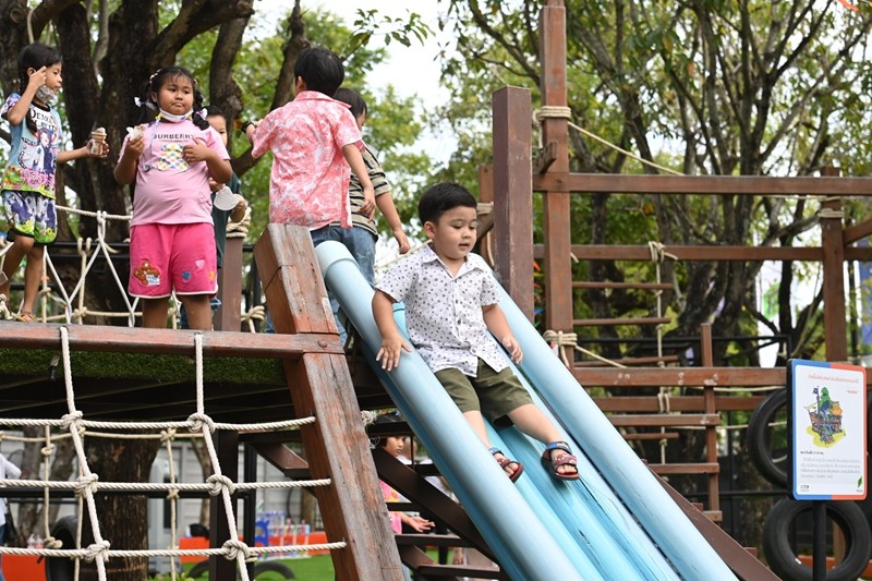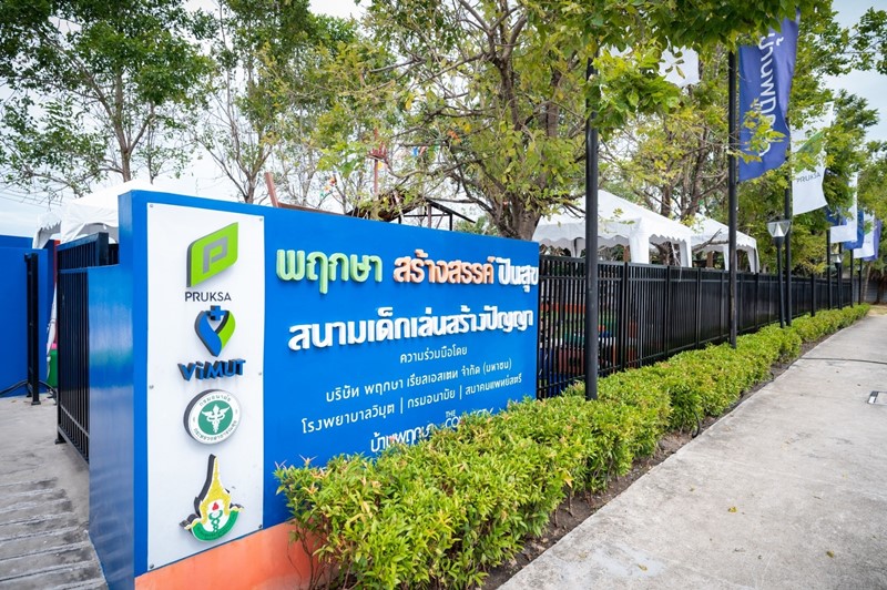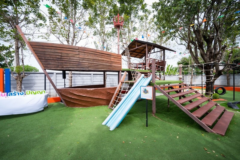 The "Wisdom Playground" project is the first playground in Bangkok and became Pruksa Model Project which will be leading to many upcoming projects in the future. This playground holds a starting point to help prepare early childhood children aged 3 years and over to learn about things in the natural recreational activity area under the safety standards that children will benefit from playing, climbing, digging the ground, playing with the sand that children will need to use hands, feet, and body to feel it. This also includes meeting new friends that will make children happy, fun, and cheerful with freedom of thought and imagination as well as develop natural brain learning mechanisms. At the same time, it also attracts the attention of children to invite parents and guardians to do activities outside the house and breathe fresh air and reduce the risk of children becoming too addicted to mobile phones or tablets, which can negatively bring stress, strong mood, aggressiveness, ADHD, and developmental delay in children.