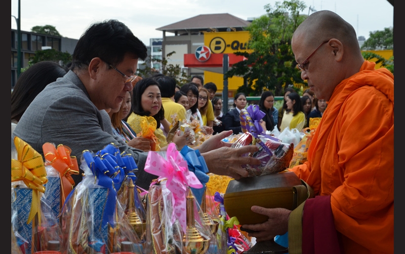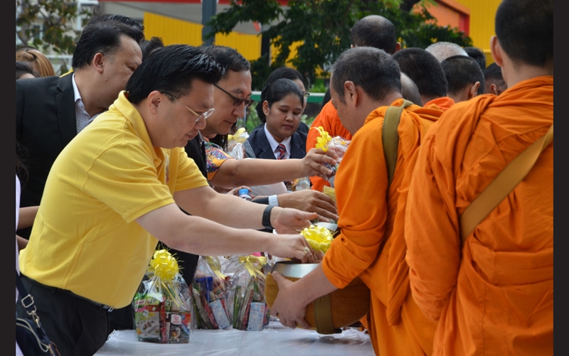 ดร.พิสิฐ ลี้อาธรรม ประธานกรรมการ และคุณทองมา วิจิตรพงศ์พันธุ์ ประธานกรรมการบริหารและประธานเจ้าหน้าที่บริหารกลุ่ม พร้อมด้วยคณะผู้บริหาร พนักงาน บมจ.พฤกษา โฮลดิ้ง และบริษัทย่อย ข้าราชการ และประชาชนในพื้นที่เขตพญาไท ร่วมทำบุญตักบาตรอาหารแห้ง พระสงฆ์วัดไผ่ตัน เนื่องในวันอาสาฬหบูชา ภายใต้โครงการ “ธรรมะ...สร้างสุข” จัดโดย พฤกษา ร่วมกับ ทีซีที และสำนักงานเขตพญาไท ณ อาคาร Pearl Bangkok